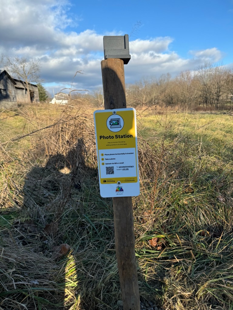 We are so excited to finally have installed our Chronolog photo station. Several months ago, I became aware of the Chronolog program. Was it a social media scroll? NPR? I don’t remember. Anyhow, as soon as I looked into what it was, I knew we had to have one! This is a fun and interactive way to log the changes of a specific place in nature through the progression of photos that folks can upload to a website. It is a “before and after” lover’s dream come true.