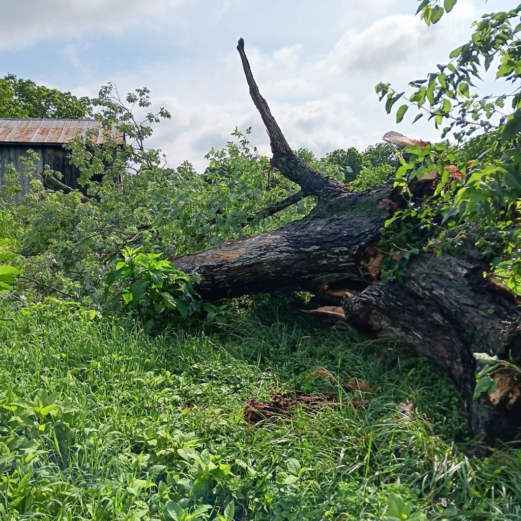Speaking of caring for the land, we happened to have lost our great cookie maker tree out front this week. It always made me think of the Keebler Elves who surely made all of the treats inside of it. We had a big storm the other night which took the tree to the ground leaving a mulberry tree in its wake. If anyone has a wood chipper and/or a chainsaw that we can borrow for a few weeks, or has a good place in mind who might deliver a rental to use, let us know! I would normally be inclined to leave it, but it happens to have fallen in the center of the pollinator patch so I do feel a hair more urgency to get it parceled out. I will miss the tree terribly, but we were honestly waiting for this day to come and are happy it fell at night when no one was around it.