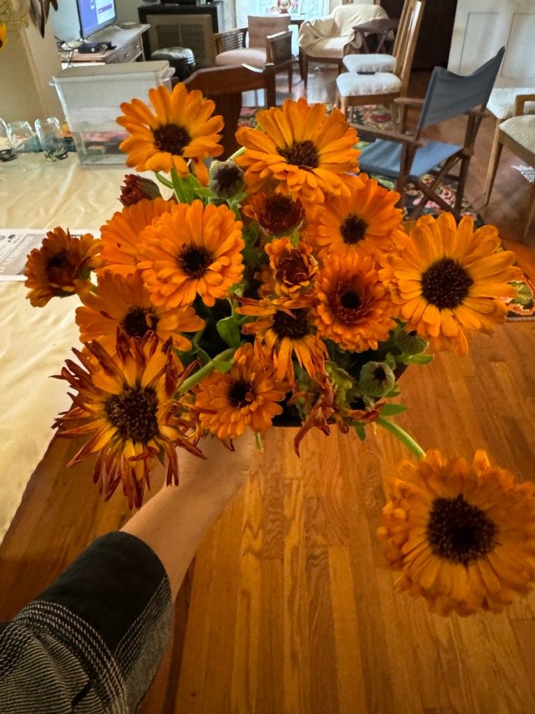 We are thinking about setting up at the Fleming County Farmers market on Tuesday evening in lieu of going to Frankfort this week to save a trip in the car. Get in touch if you need any flowers this. We can arrange pickup at the extension office on Tuesday evening or here at the farm another day. I have an appointment in Edgewood on Friday, so if anyone up north needs anything I am sure we can work out a drop off spot for you to pick up at. Let us know!