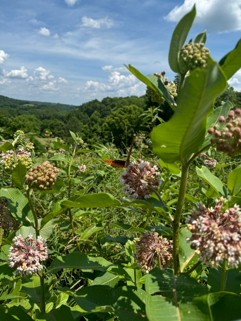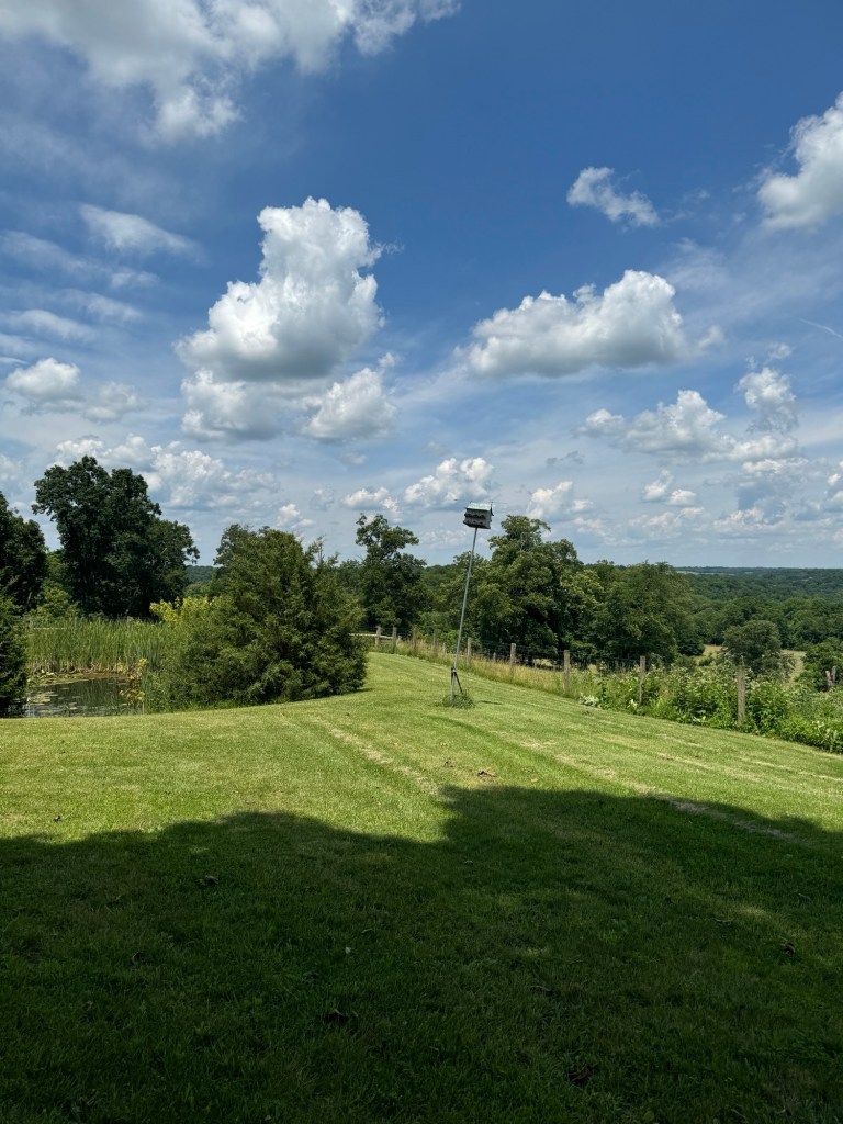 I had my first up close and personal experience with Purple Martins at our friends’ farm on Friday and now am more motivated than ever to get some boxes set up for them to move into. Aside from their mosquito loving palate, they are absolutely darling to watch. Let me tell you, I love visiting other people’s farms. It is quite literally one of my favorite things to do. This farm had the most beautiful pollinator stand that released the scent of bergamont into the air as we drove through it in their side-by-side that we toured around in as if we were on a safari in a distant land.