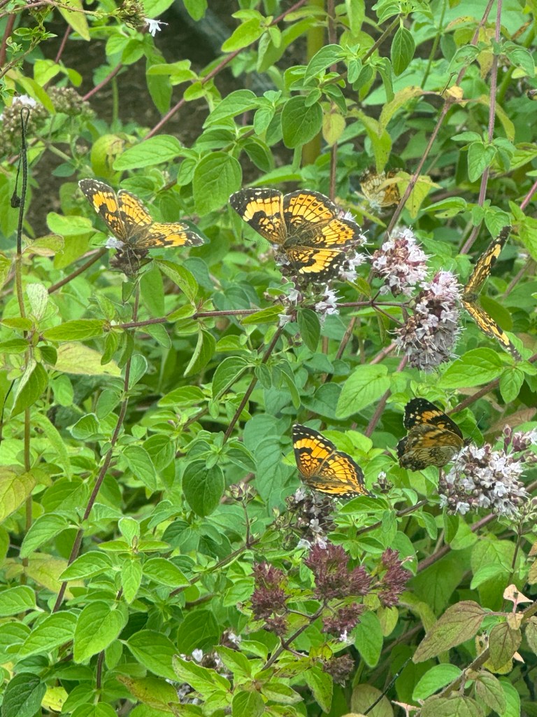 About halfway through the morning another dear friend showed up with her butterfly book to see about these little silvery checkerspots that have been donning our oregano this year. It seems that aster is a host plant for these critters and we sure do have a lot of native aster, so it makes sense. She let us hang onto the book for some more fun identifications at the house. I then made a round, checking out all of the other booths and nerded out with another vendor about the lambsquarters and then with another about her beautiful cosmos and dahlias. Another vendor asked me how we keep our weeds out of our flowers and I got to excitedly respond that we don’t and that sometimes when possible we weed around the base of the plant to give them some room.