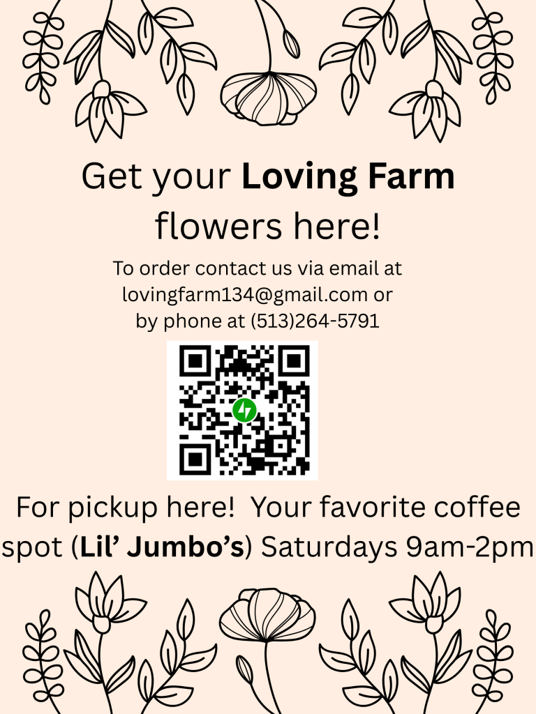 July 26, 2025: pre-order a bouquet for pick-up at LilJumbo Coffee Company between 9 and 2. It is a great addition to your morning weekend coffee!
