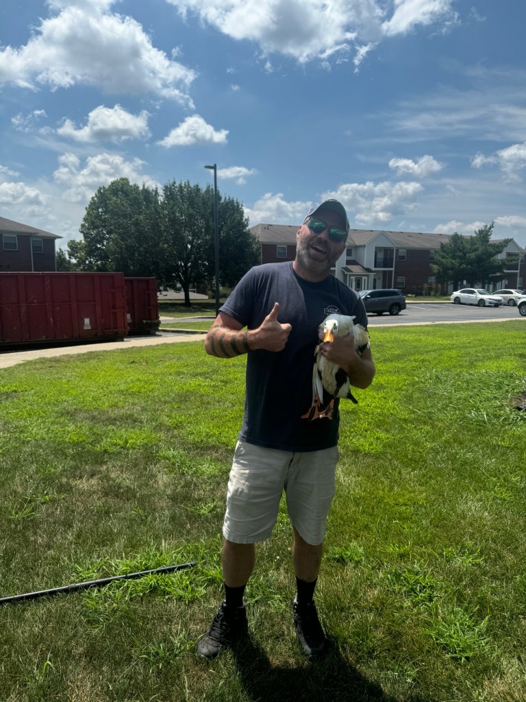 Tuesday was a banger, getting picked up at the clinic by my friend Jimmy Longbottom (Longbottom Bird Rescue) who let me help him respond to a few inquiries about some domestic ducks who were abandoned at some places around Cincinnati. It was both heartbreaking and exhilarating, ending the adventure by capturing a roughly 8-week-old duckling just getting her quack. She was left by someone at an apartment complex pond, fending for herself with some Canada Geese (I mean- the friendly Canadian extends all species) who are able to fly away from predators and find food elsewhere when needed. Please consider donating to his nonprofit rescue but most of all, for the love, do not dump feed store ducks of any age at parks or ponds. It will not end as well as this one did.