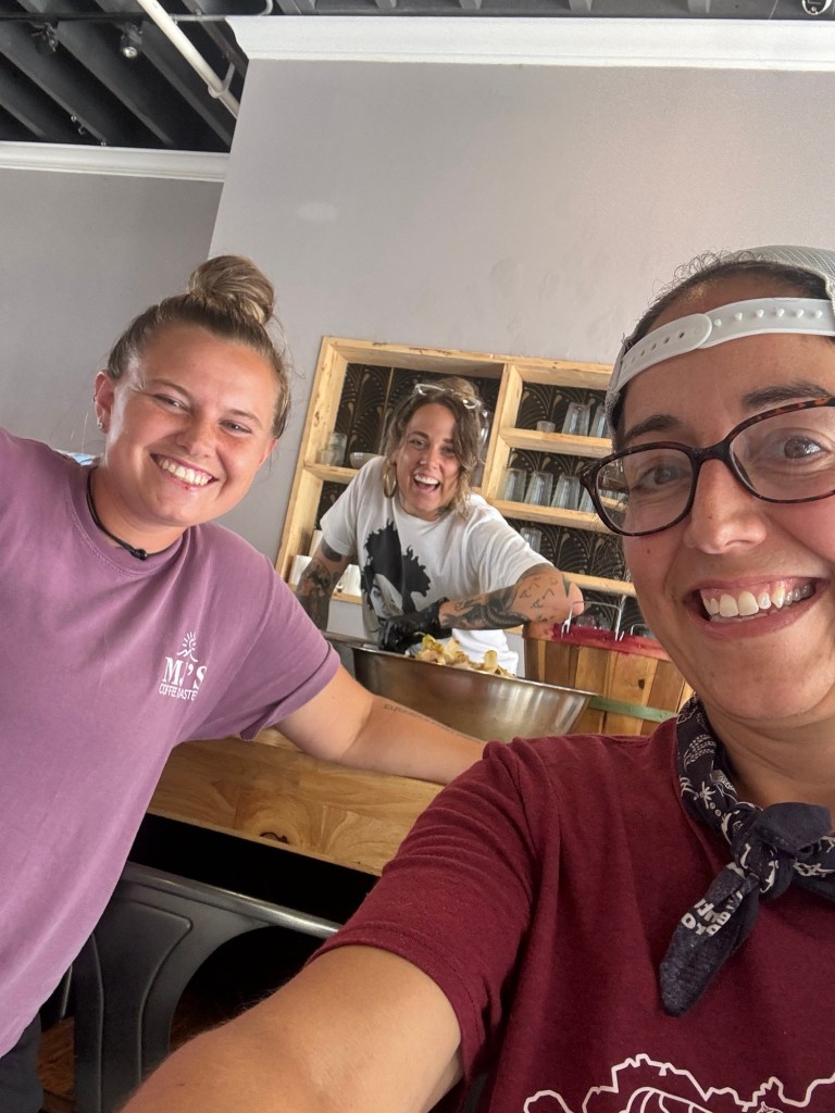 I attended two happy hours and got to see ex-coworkers, now just friends, who are usually too far to visit. Two of my very favorites happen to share the same last name, one of which picked me up at 21C in Cincinnati to help me get to one of the gatherings. I made it back to camp that evening by way of another who happened to live near the campground I was staying at. We had been at opposite ends of the table so it was just lovely to get some time to reconnect and share. Before the museum that day, I took the bus to Covington and found my friend Colleen (check out her pottery) at North South Baking Company and it felt like I was walking into The Planet on an episode of the L Word. The planets had to have been aligned as Madee of MJ’s Coffee Roastery was there, who I have not seen since our last time at Flock back in early summer. It was a pure trifecta of queerness only to be improved upon if our amazing signifs were there beside us.