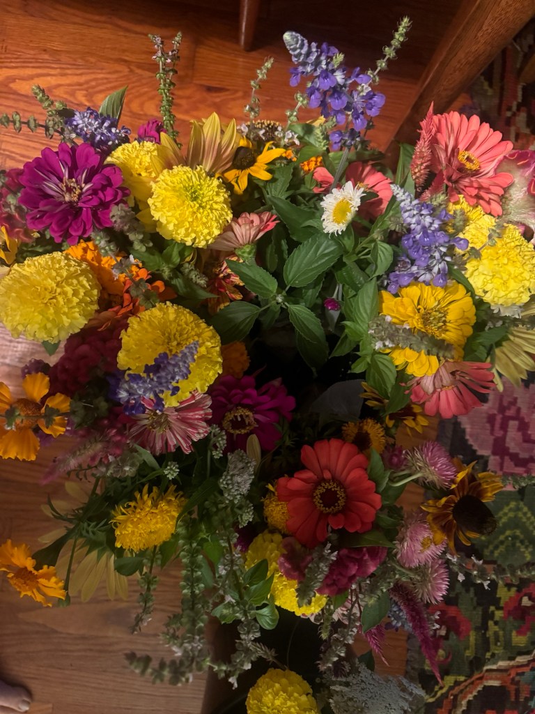 Weekly: pre-order bouquet drop off at LilJumbo Coffee Company in Old Washington, Kentucky for pickup between 9 and 2. Call or text or email us ahead of time to order yours anytime by Friday morning when we cut flowers.