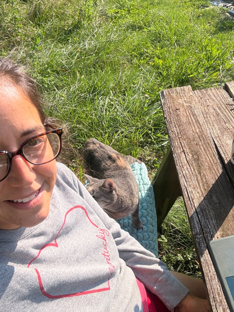Perriee is at the farmers market selling some flowers and garlic today. I am home for the next couple of days in between week one of four weeks of treatments up in Northern Kentucky, so she let me stay home to fill my cup with cats, the land and our home. If you want to know what is goin on in treatment land, feel free to ask (long story, short, I should be fine), but what I really want to share is what I filled my time with when I was NOT doing that (although the people I interacted with there are lovely too, plus the flowers I brought them Monday were there every day to look at when I was coming and going which made MY days brighter). Get you a life partner who supports you like Perriee supports me. She is my angel incarnate.