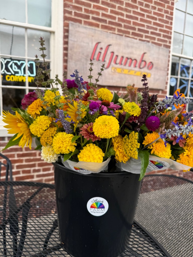 Weekly: preorder bouquet drop off at LilJumbo Coffee Company for pickup between 9 and 2 on Saturdays. Call or text or email us ahead of time to order yours anytime by Friday morning when we cut flowers. If you went the past couple of weeks, you might have seen what we are serving up these days. They look good. Just sayin. Please get a cup of coffee there when you can Thursdays through Sundays.