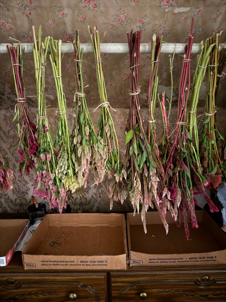 Things people consider weeds that we welcome but might pull to make room for something else are lambs quarters (I believe they can inhibit growth of surrounding plants but are also freaking delicious so eat them if you pull them), violets, dock, cress (we sell that as a filler!), Queen Anne’s lace, native aster (serves as late season pollinator food) and chicory. Plants that can almost always stay are dandelions, iron weed, goldenrod (it is the Kentucky state flower), chickweed (so delicious and nutritious), fleabane, purple amaranth, and sunchokes (also delicious and nutritious). As always, please don’t take my word before eating something outta your yard and for the love please know it has not been sprayed with anything poisonous before consuming even “safe” foods. When you kind of figure out what IS safe, you might begin to view your “overgrown” areas through a different lens. I know we sure do.