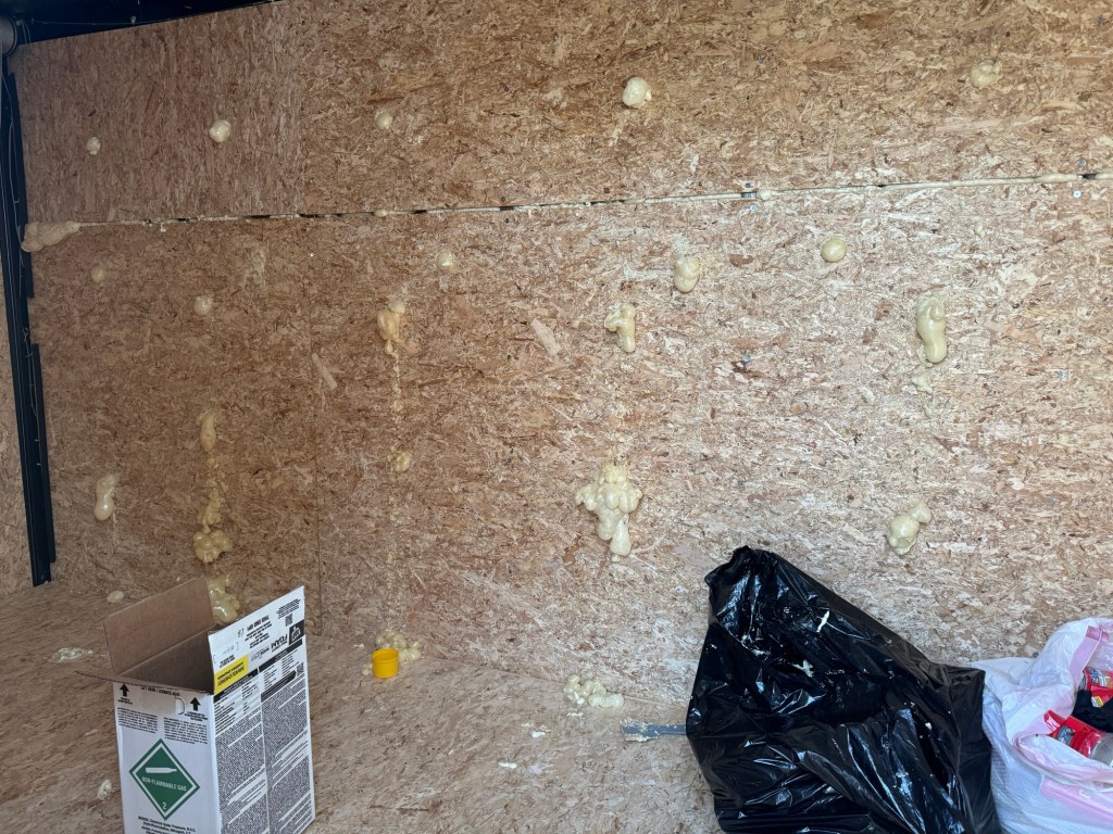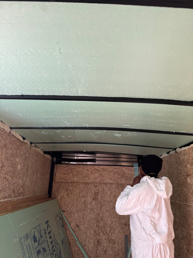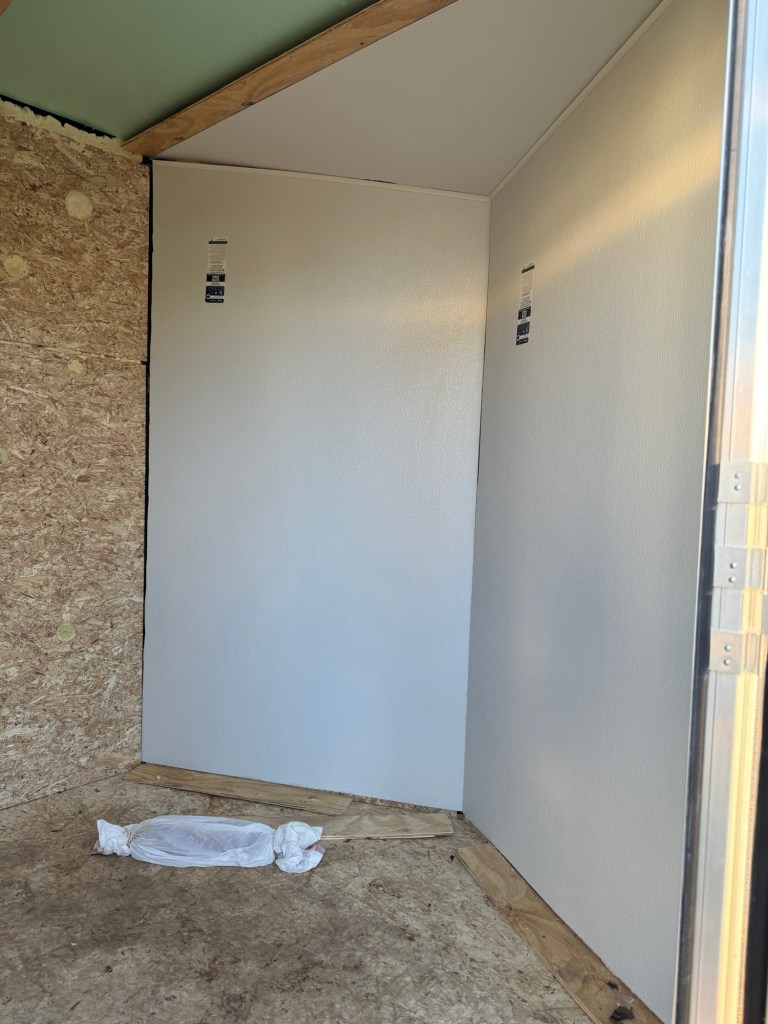 Things we have done which we were unsure of going into but feel pretty good about having behind us is the application of the spray foam insulation behind the walls of the trailer and we have the ceiling insulation cut and snugged into its spots between the ceiling “rafters”. It was an impossible task that we completed. Next steps are to hang the fiberglass reinforced plastic (FRP) and then we will paint the floor with an epoxy coat before having the pieces that actually cool the room installed. The goal is to have it running for the first tulips of the season which could arrive as early as March. I am completely disgusted with the dust that these panels make when you cut them, which is likely a huge part of the apprehension from doing it. I will say, they do look nice when they are up and I am sure this cooler is going to be nice when we are done with it, even with us practically winging it along the way.