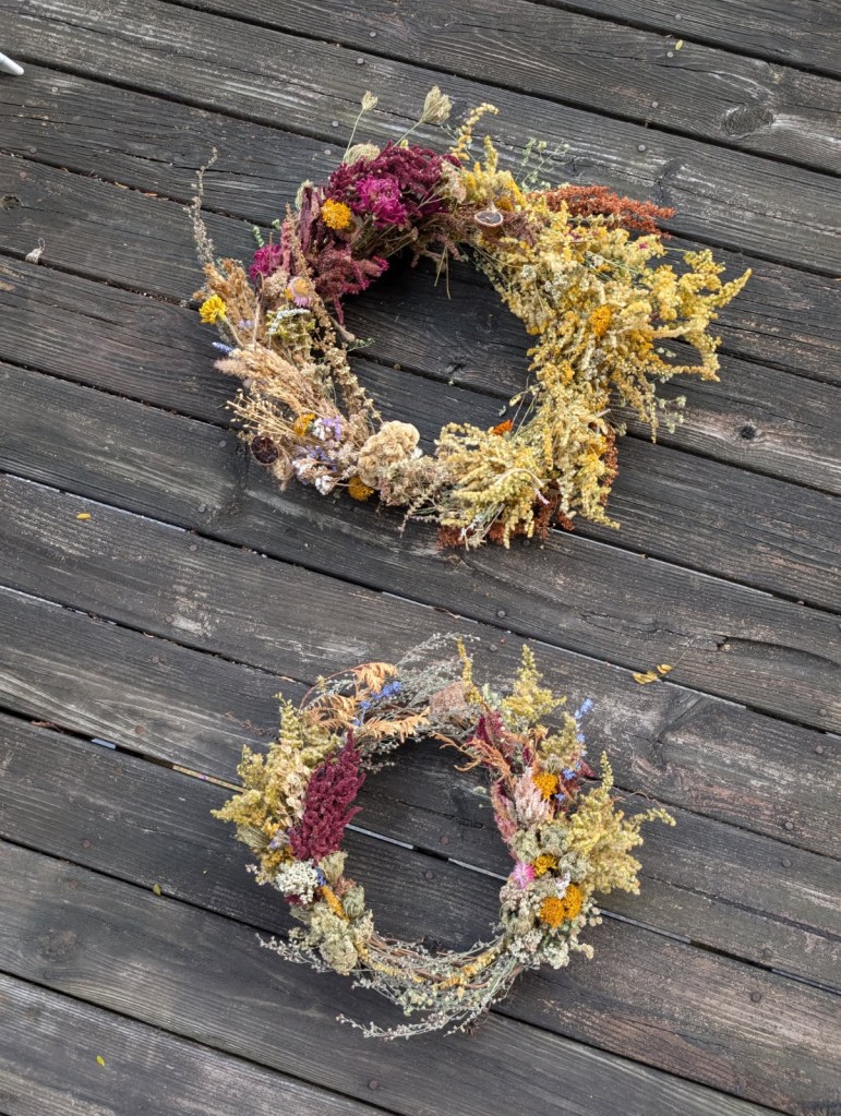 In closing, please check out these beautiful wreaths that the lovely couple made with the flowers we designed for their celebration of love earlier this month. We gifted two of our grapevine wreath bases (and a catnip kicker) for them both to make their own designs with, using the dried flowers they got to keep (the vase rental thing) and wow…breathtaking! I broke out in i brividi when I saw the photo and wanted to share it here, mostly so I can go back and gaze at their creations whenever I need a flower fix. Flowers just don’t quit! Have an amazing week!