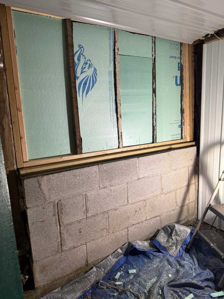 In addition to getting the wall downstairs insulted and covered with foil wrap, we added a piece of plastic over the side-door’s screen window and purchased some weather sealant for that exterior door, all in preparation for the super cold temps we had rolling into town.