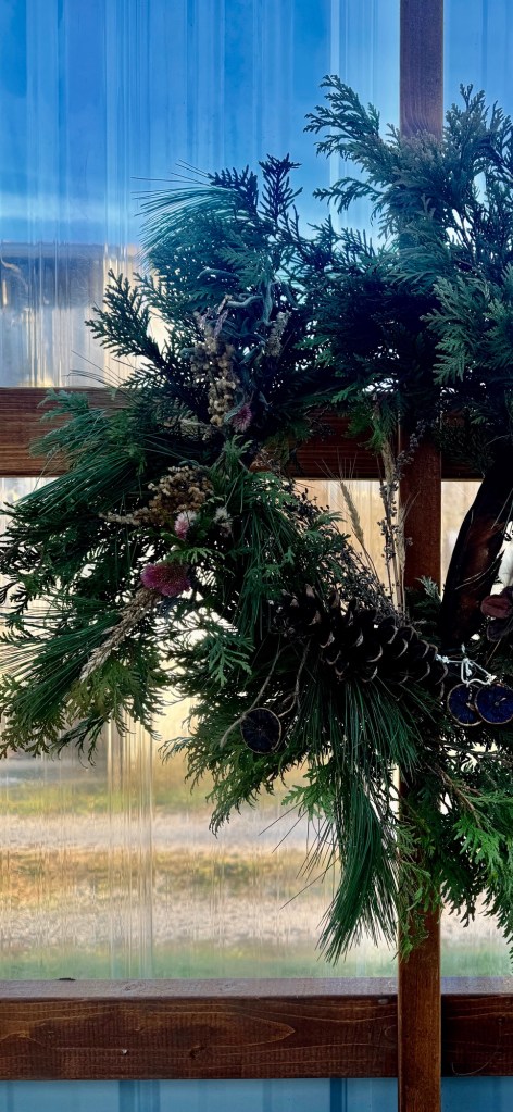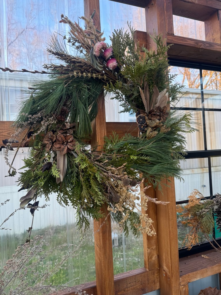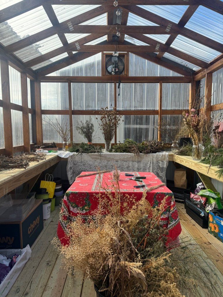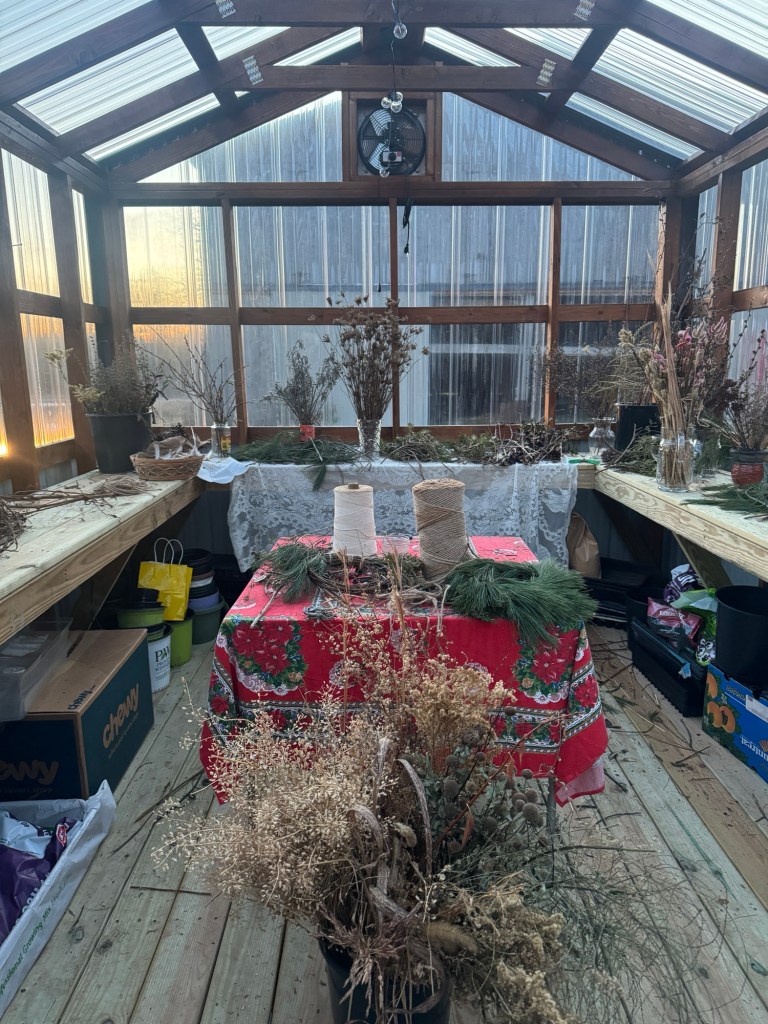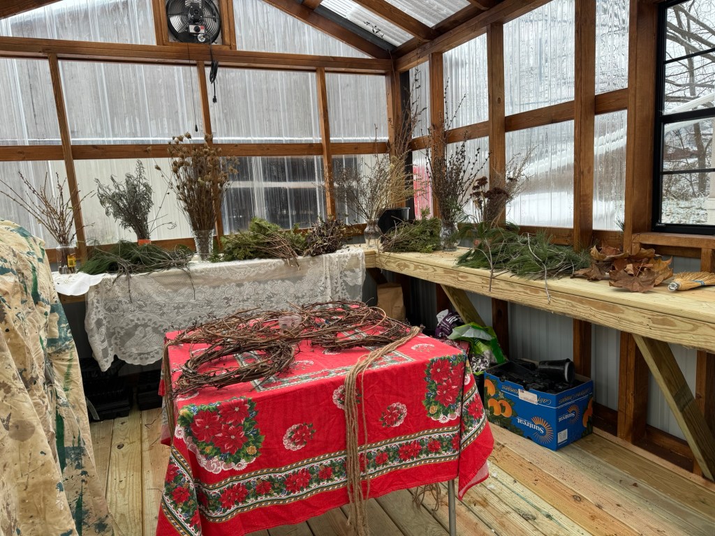 Our hand-tied holiday wreath making workshop was so much fun and was definitely a “pinch me” moment in terms of employment and being at a job. The weather was nice so we were able to set up in the greenhouse with so many gorgeous ingredients, all grown here on our farm (not the lemons, those were dried here though!). “Do what you love and you’ll never work a day in your life.” – Wayne, Letterkenney The group ended up being small, and we feel that the cozy groups suit us well, having a chance to offer some fun snacks on my mom’s nice Fingerhut China and get a chance to chat with one another or just enjoy the peace and quiet in a safe space. Next time we have an offering such as this, we will be capping tickets at four people. If you have friends or family coming to town and need something fun to do with them, especially in the colder months, we would love to help.