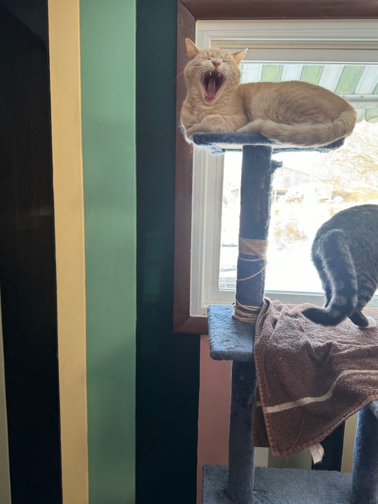 Pride update (meow): At the time of you reading this, Gray has finished her medicine! Not many sightings of the new gentlemen tomcats by the house. Max stepped in some paint and we managed to keep his foot from hitting any of the rugs while we walked behind him and wiped up his footprint. Otherwise, all is quiet on the feline front, which is just how we like it.