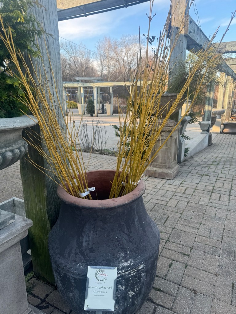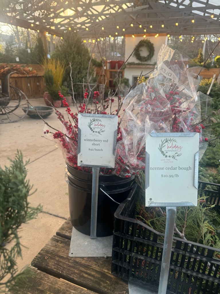 I would classify this nursery as, “gourmet for all”, seeing their beautiful luscious holly bushes out front, and marveling at all of the beautiful wreath ribbon and cute garden tools on display. After lunch (the initial reason we went there), we wandered into the outdoor tree nursery and asked one of the folks there if they had any winterberry left and he found the last one in the back that happened to fall within our price range! We also came out with a couple of packs of flower seeds too because we are only human.