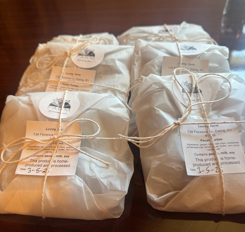 We have three orders of Pecan Turtles left for sale this week. They are 4/$5.00 and they are AMAZING! Small batch, hand made caramel, stirred to perfection by Perriee. Claim them TODAY! Call, email, or text.
