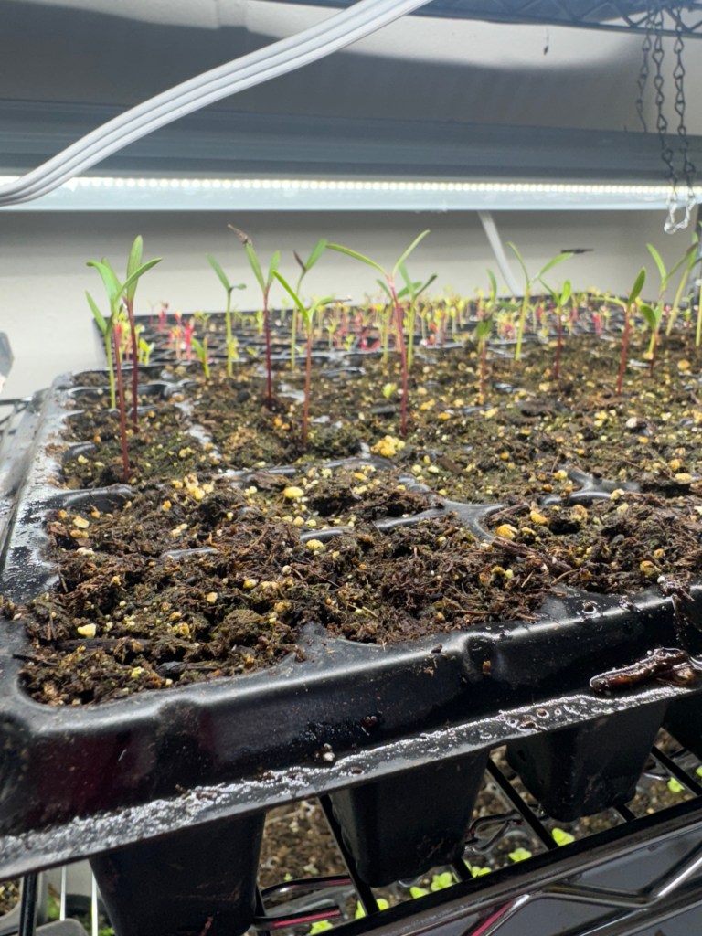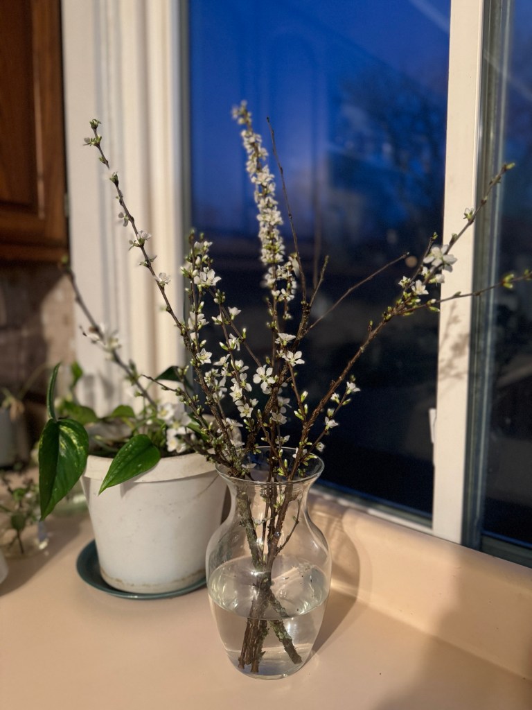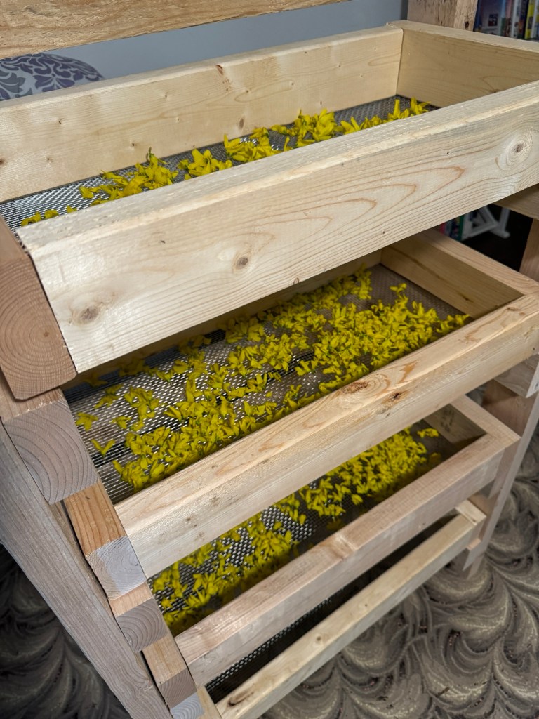 Turnip seeds should be direct sown by the time this hits your inbox. We seeded some more sunlfowers which are already germinating (RIP to the two trays we tried already- I am proud of us for turning the page on them already), cosmos have been seeded and are already up, and basil seeds are poking out of their trays. Our cut list includes forsythia, nanking cherry, and daffodils!! We even harvested forsythia flower for the first time and they are nestled on our herb drying rack.